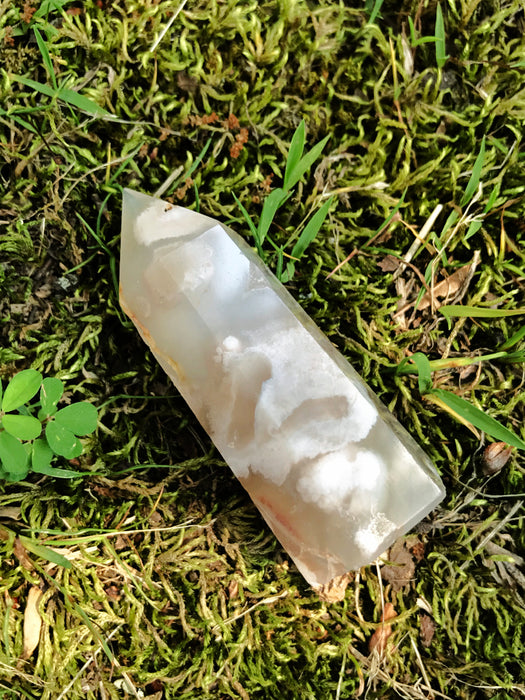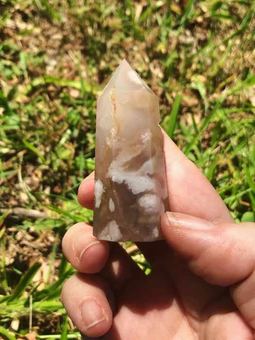 Flower agate is a unique stone used to bring out individuality & helps to reach potential with its swirling neutral patterns of brown, cream & grey. Use the towers in healing, meditation or as a decoration. Each tower is approximately 2.25" tall.