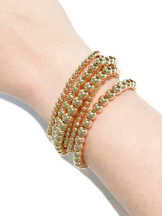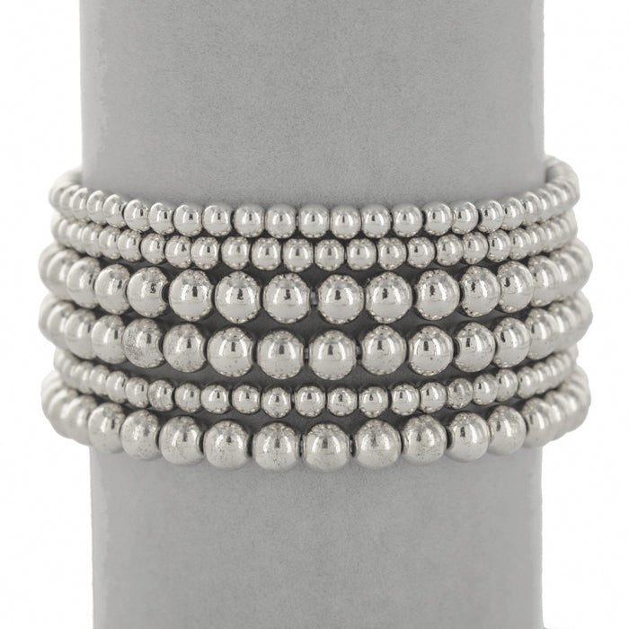This versatile stretch bracelet set includes six bracelets: three small (3mm) diameter beads and three larger (5mm) diameter beads. Stack up for a statement or wear individually for a more subdued style.