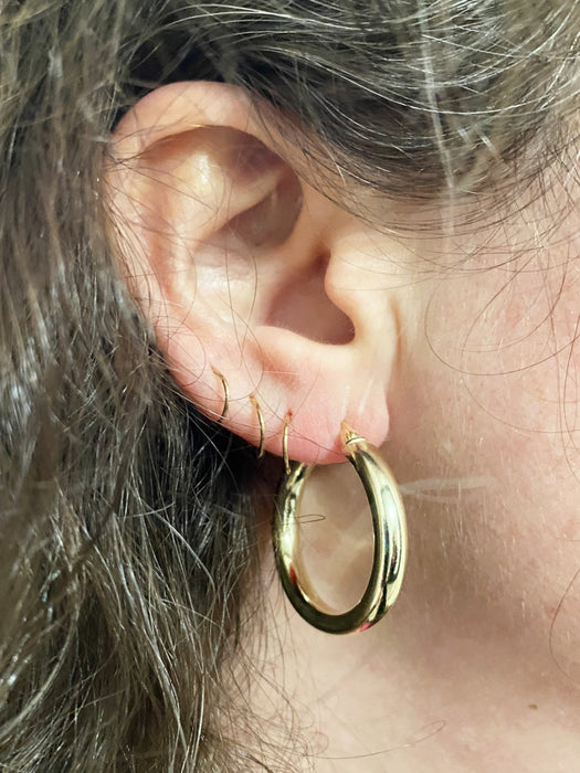 Classic sleek tube hoop earrings are lightweight and have an easy pincatch clasp, perfect for daily wear!