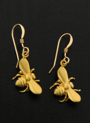 Your ears will be buzzing with these delightful bee dangles! Three-dimensional honey bees are matte-finished for soft effect. Gold filled ear wires.