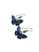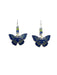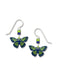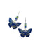 These fun dangle earrings feature a beautifully detailed butterfly with navy blue enamel detail against a golden green background.