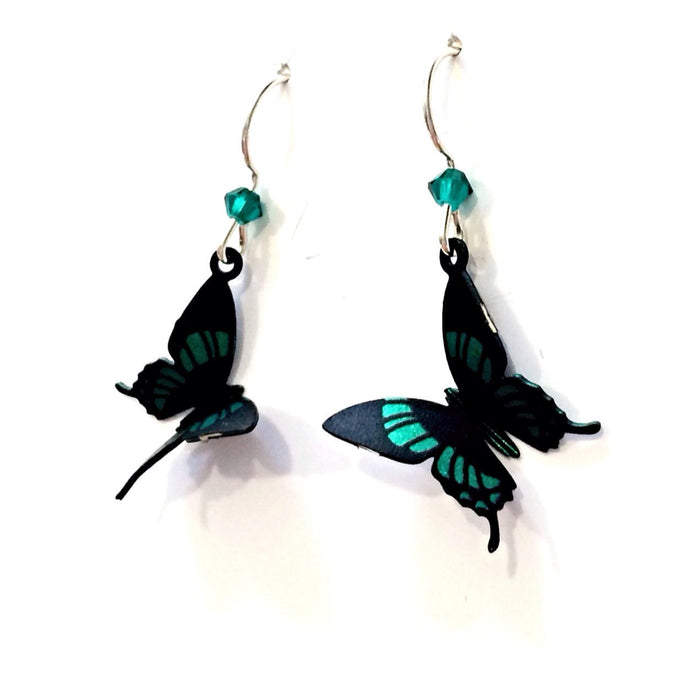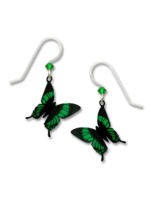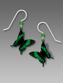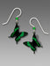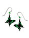 These butterfly dangle earrings feature a beautiful deep emerald green and black pattern.