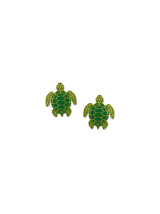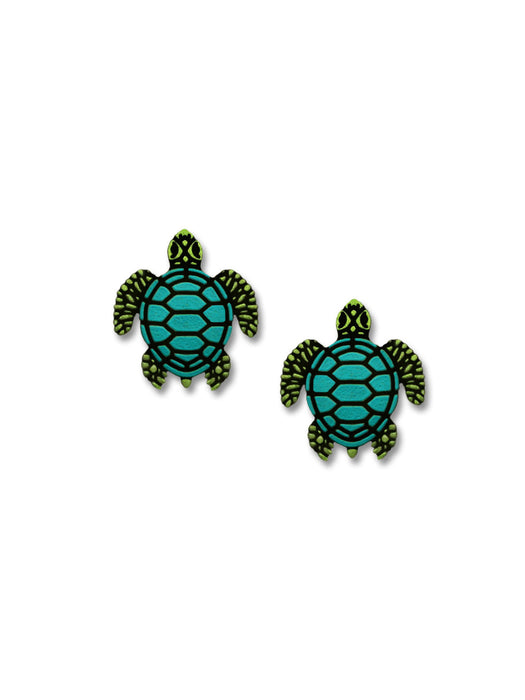 These stud earrings are detailed blue and green enamel sea turtles on a surgical steel post (hypoallergenic).
