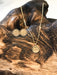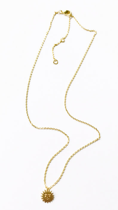 This happy little sun pendant has a brushed finish and comes on an adjustable cable chain.