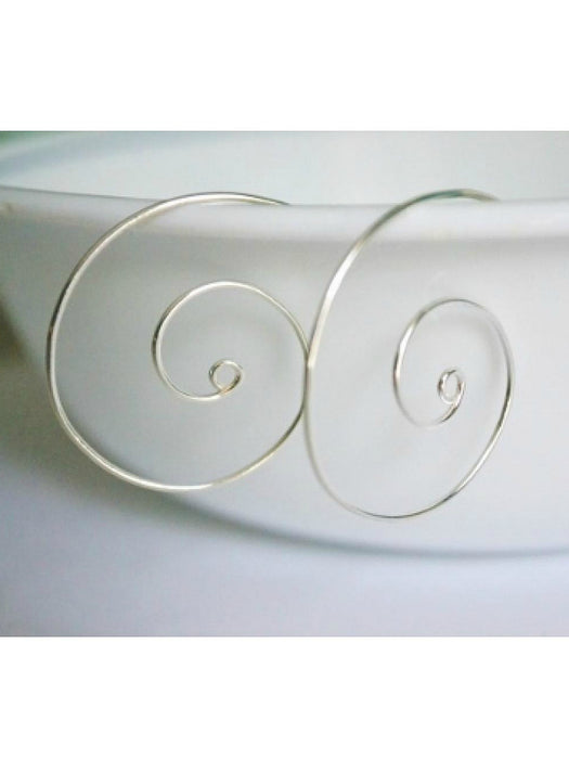 These artsy earrings are one long piece of sterling silver wire shaped into a large spiral. Simply twist in to wear.