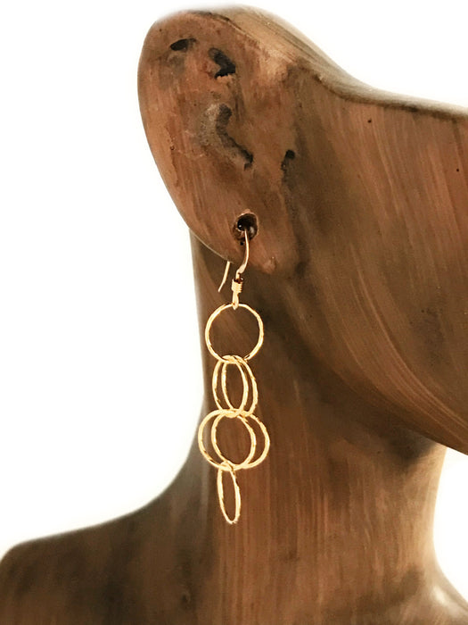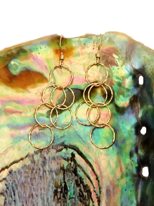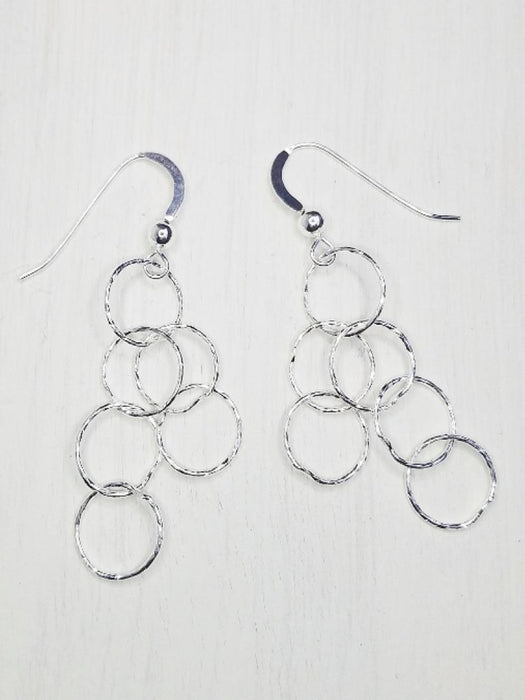 These statement earrings are light and versatile, with six diamond cut hoops interlocked in a free moving design. The diamond cut adds subtle sparkly texture to the metal.