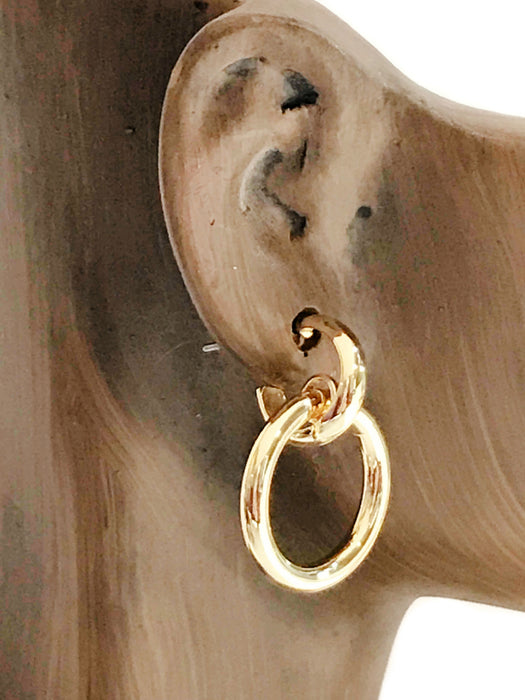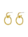 Classy statement stud earrings are two thick golden rings linked together with a post back.