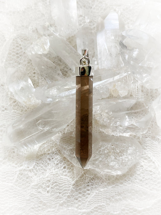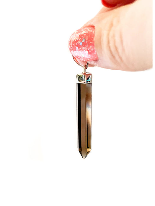 These pendants are long faceted crystal points capped with a generous sterling silver bail. String on a chain or beaded stone necklace to make a beautiful piece!