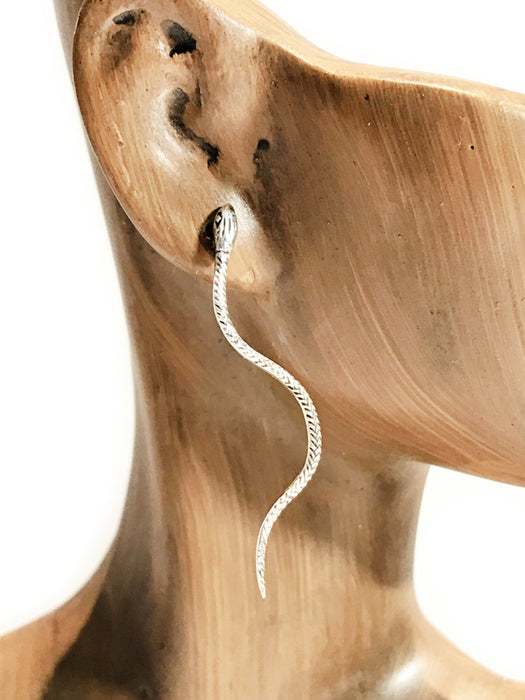 The statement stud earrings are long snakes, with realistic oxidized details.