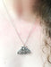 Pendant is 3/4" long and 1" wide. 20-23" adjustable chain.