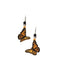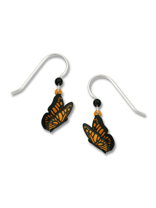 These earrings are the dangle version of our popular butterfly posts. A detailed monarch butterfly flutters from sterling silver ear wires that are accented with a black bead. Richly enameled in orange and black. Made in the USA by Sienna Sky.