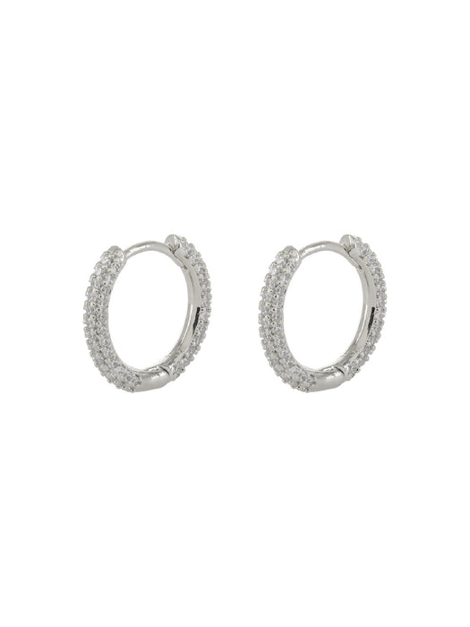 These elegant huggie hoops are set pave-style with three rows of sparkling clear CZ crystals. Huggie hoops are hinged at the bottom and click closed.