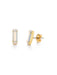 These stud earrings feature sleek Czech crystal baguettes in lustrous emerald green or milky opalite crystal prong set in a gold plated setting.