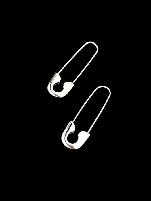 These edgy earrings are large safety pins. Pin clips at bottom of earring.