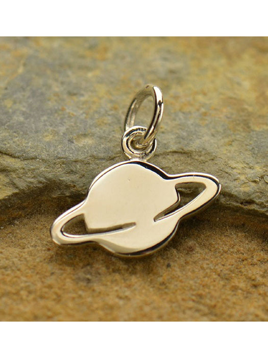 A small silver charm of the planet Saturn comes on an adjustable cable chain.