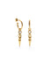 Selene was the Greek goddess of the moon. These gold plated hoop earrings feature a figural drop of a goddess holding a mother of pearl moon. Soft matte finish.