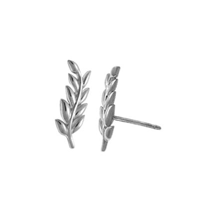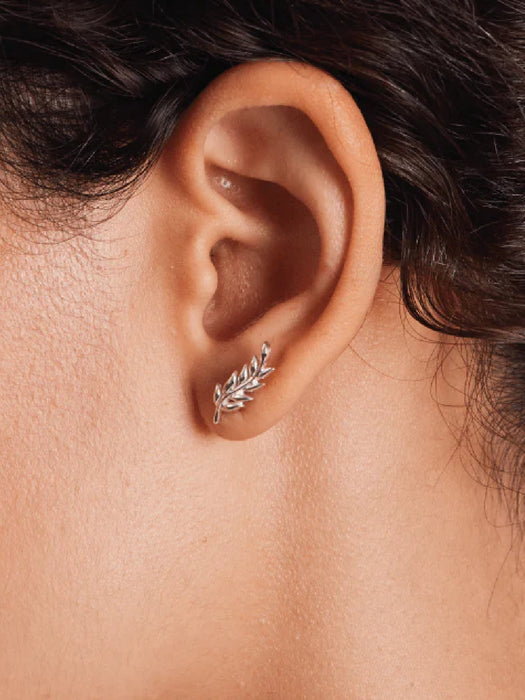 These stud earrings feature a graceful leaf. They can be worn as a small climber by turning up the earlobe.