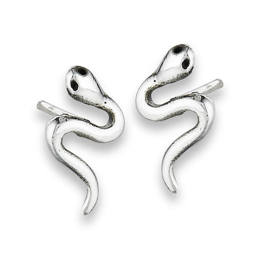 Fun curling snake stud earrings have black enamel eyes.