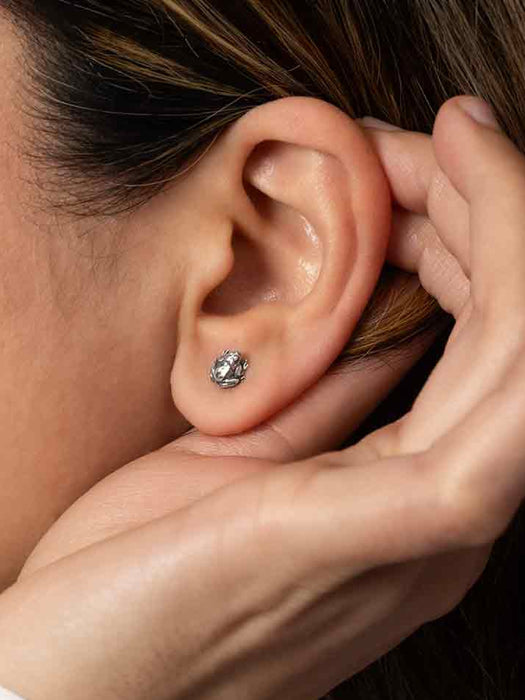 Leap into nature’s beauty with these tiny dimensional frog stud earrings. Designed in lifelike detail, these playful frogs sit in a peaceful pose, exuding a sense of calm, wisdom, and connection to nature. Its fully sculpted form allows it to be admired from every angle, with oxidized detailing to enhance its realistic texture, from the delicate limbs to the expressive eyes.