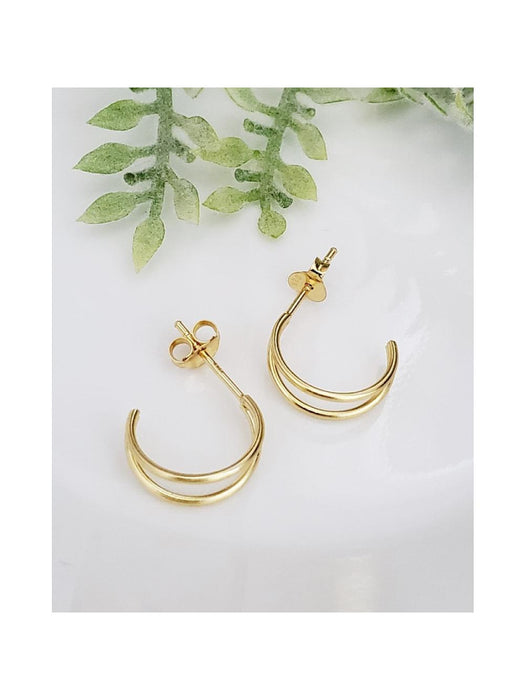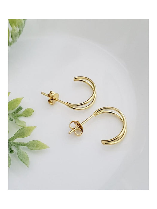 These chic and modern double half hoop stud earrings are made of gold over .925 sterling silver, great for everyday earrings! These dainty studs are simple yet stylish with a soft matte finish and post closure.