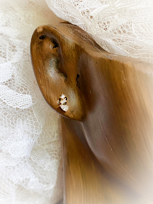These elegant stud earrings are a stacked cluster of clear cubic zirconia crystals in various shapes.
