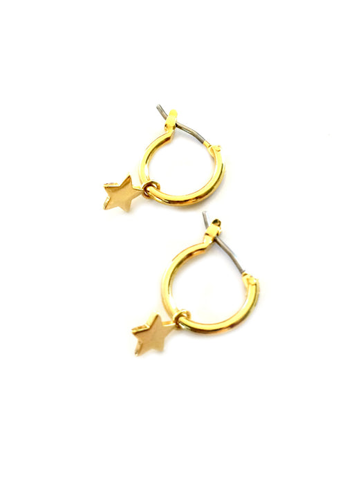 These popular earrings feature a small hoop with a star charm dangle and easy pincatch closure.