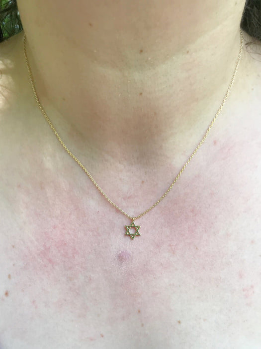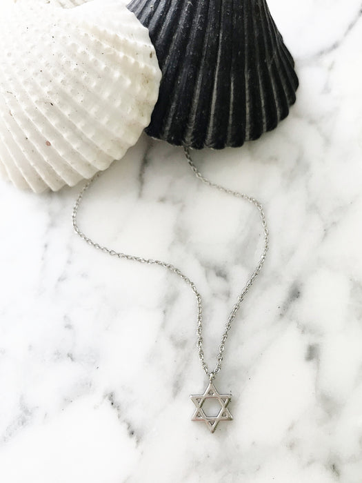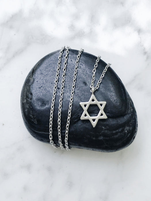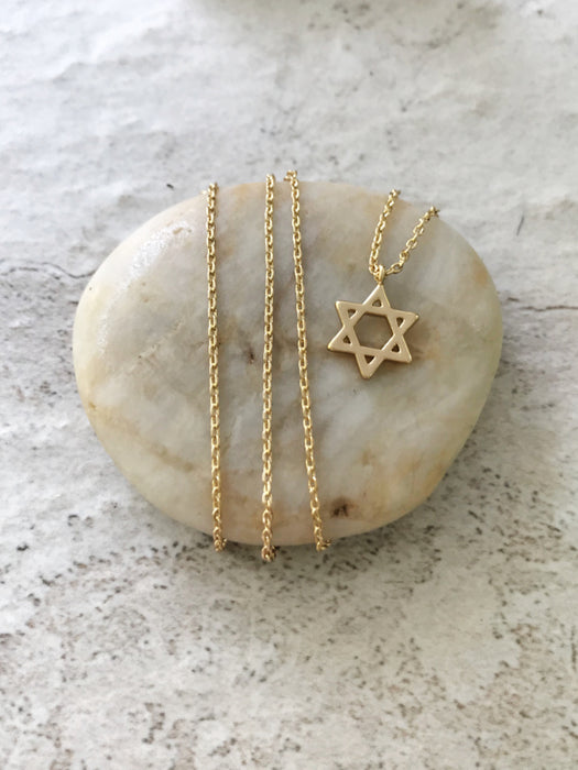 The classic symbol of the Jewish faith, these Star of David pendant necklaces have a shiny finish and come on either gold or white gold plated cable chain. Lobster clasp.