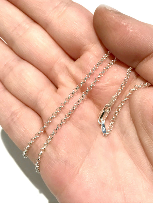 These sterling silver rolo chains are sturdy & versatile. Lobster clasp. Pair with one of our beautiful pendants!