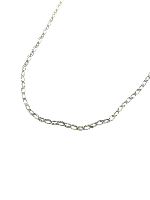 Sterling silver romy chains have a large open oval link. Light yet sturdy! Pair with one of our beautiful pendants or wear on its own. Lobster clasp.