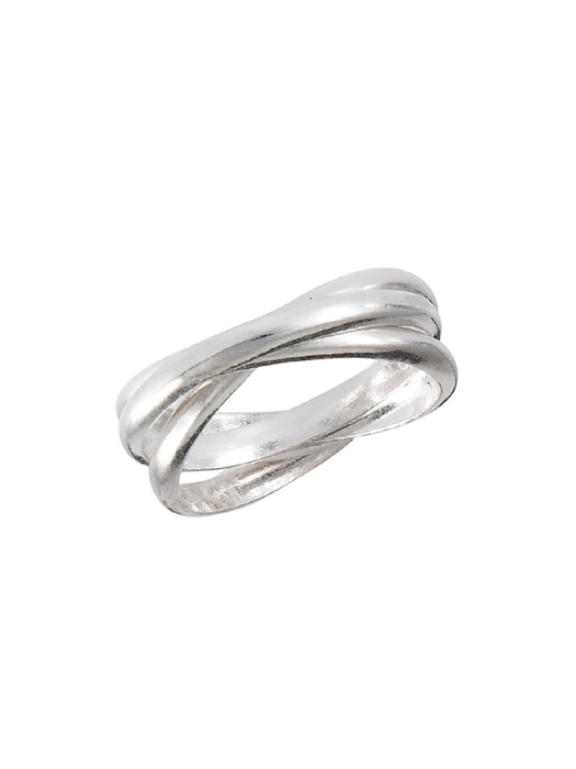 This classic ring features three intertwined silver bands. Each rounded band measures 1/16" wide.