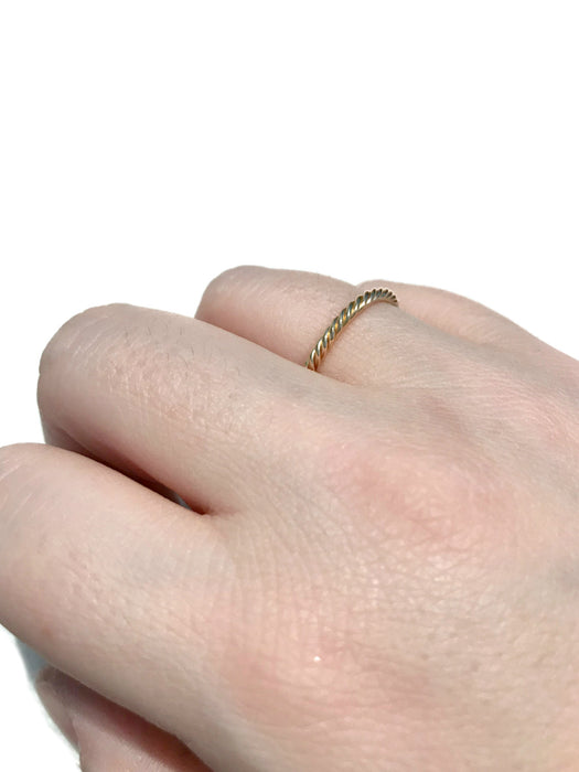 This classic 14kt gold filled ring is a thick rounded twisted band.