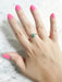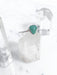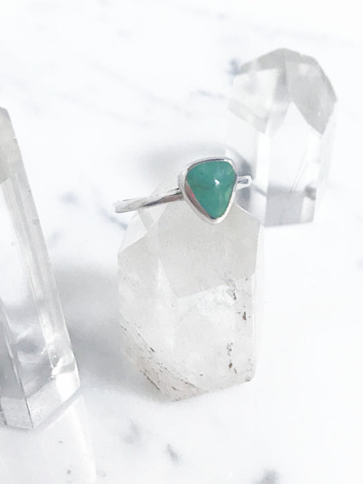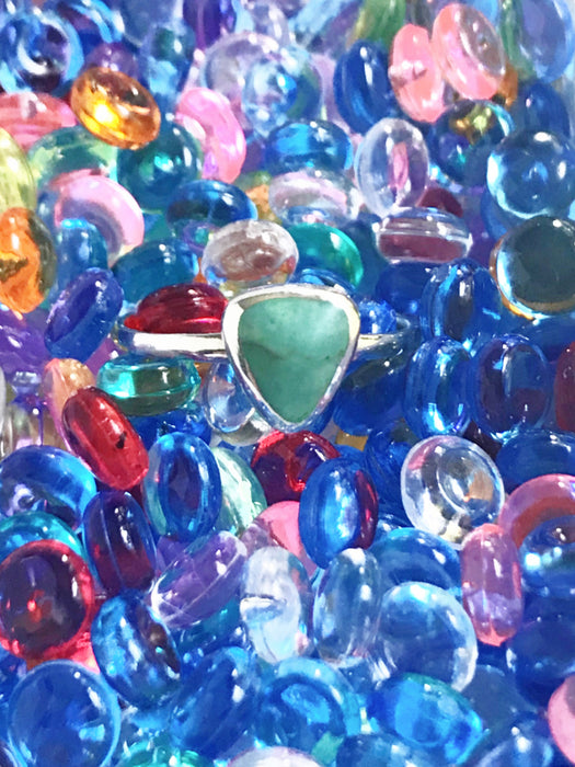 This modern ring is a sleek triangle with rounded corners inlaid with bright blue synthetic turquoise.