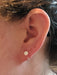 These unusual earrings are a curved wire with a white opal cabochon at one end to be worn nestled against the ear with the wire curling underneath the lobe, almost like a hoop.