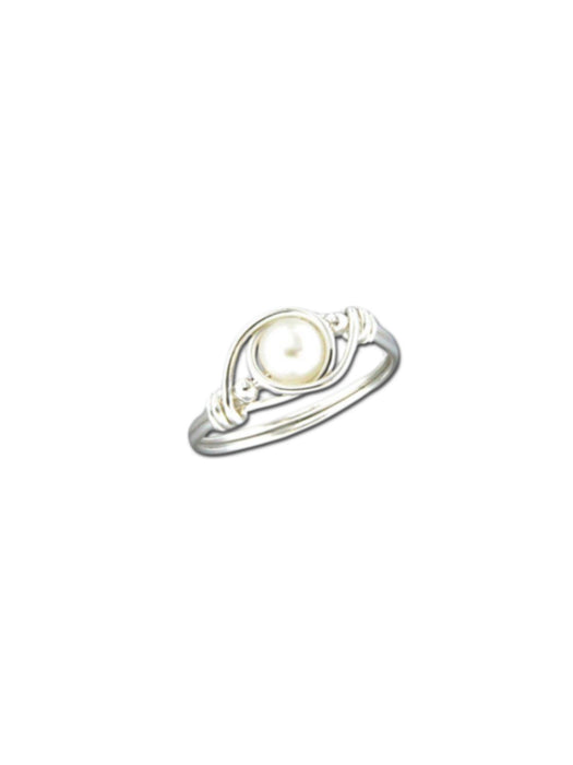 Dainty ring features a beautiful white pearl wrapped in sterling silver wire. Face of ring is 1/4".